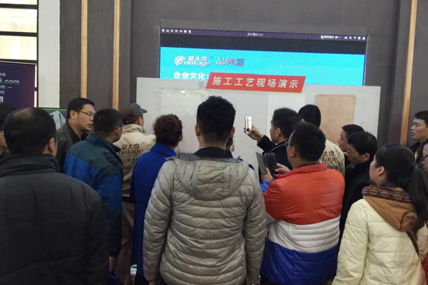 蒙太奇硅藻泥·手工壁紙精品展館以驚艷的視覺效果,吸引著社會各界人士前來蒙太奇展位咨詢,人山人海,絡(luò)繹不絕。尤其在蒙太奇專業(yè)人士的介紹之下,全方面了解品牌實力之后,與蒙太奇成功合作,成為其中一員,與蒙太奇家人們共同鑄造輝煌明天。