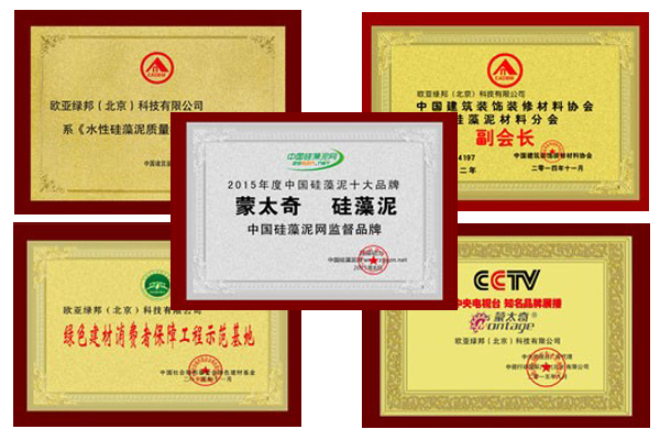 正式經(jīng)過(guò)多年來(lái)不懈努力,致使蒙太奇品牌獲得多個(gè)榮譽(yù)資質(zhì),如:硅藻泥行業(yè)十大品牌、硅藻泥材料分會(huì)副會(huì)長(zhǎng)單位、《水性硅藻泥質(zhì)量標(biāo)準(zhǔn)》參編單位、綠色建材消費(fèi)者保障工程示范基地、CCTV展播品牌、《硅藻泥裝飾材料應(yīng)用技術(shù)規(guī)程》編制單位等。